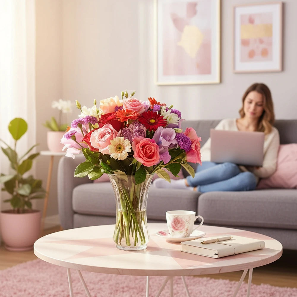 What's included: Hand-arranged roses, gerberas, alstroemeria, snapdragons, and fresh greenery.