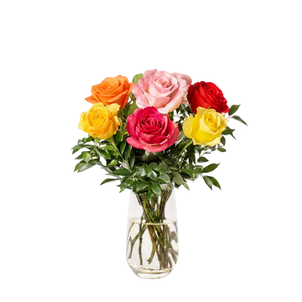 One Half Dozen (6) sensational Long Stemmed Mixed Colour Roses! What better way to express your feelings than with an extraordinary bouquet of Mixed Roses? Our roses are specially grown to be large, deliciously plump and robust, and long lasting to emphasize the statement you want to make to their receiver. Includes one-half dozen exceptionally stunning fresh-cut, long-stemmed mixed colour roses accented with fresh greens.