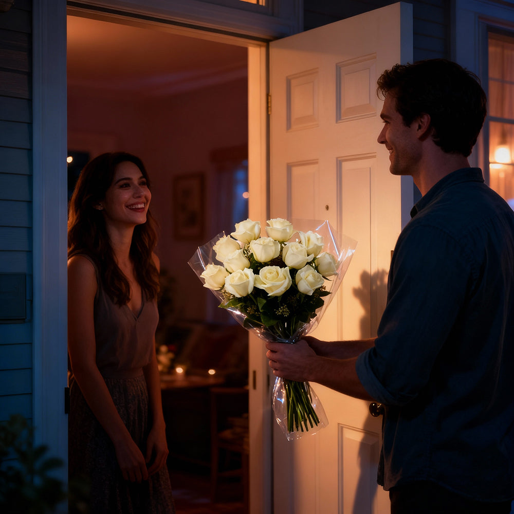 Classic and elegant. One dozen premium long-stem white roses with fresh greenery. Large, full blooms carefully selected for quality and delivered fresh to last longer.Â